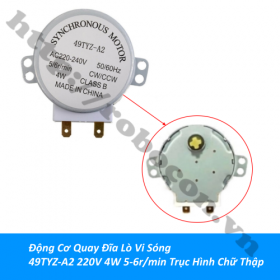 - Động cơ quay đĩa lò vi sóng 49TYZ-A2 220V 4W trục hình chữ thập (hay còn gọi dấu cộng, hoa khế) là 1 dạng motor giảm tốc đảo chiều dùng thay thế khi lò vi sóng không xoay khi hâm thức ăn, mâm xoay không xoay nổi khi hâm nhiều đồ.