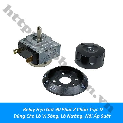 Relay hẹn giờ DKJ-90 2 chân trục D với thời gian là 90 phút dùng cho lò vi sóng là loại timer hẹn giờ dùng thay thế và sửa chữa cho lò nướng, lò vi sóng, nồi áp suất,…