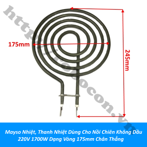 - Mayso nhiệt, thanh nhiệt dùng cho nồi chiên không dầu 220v 1700w dạng vòng 175mm chân thẳng sẽ thay thế cho nồi chiên không dầu sau một thời gian dài sử dụng, lò xo mayso sẽ bị bám một lớp dầu mỡ và vụn thức ăn khó vệ sinh.