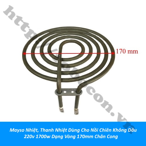 - Mayso nhiệt, thanh nhiệt dùng cho nồi chiên không dầu 220v 1700w dạng vòng 170mm chân cong sẽ thay thế cho nồi chiên không dầu sau một thời gian dài sử dụng, lò xo mayso sẽ bị bám một lớp dầu mỡ và vụn thức ăn khó vệ sinh.