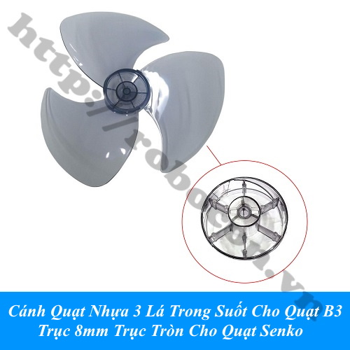 Cánh Quạt Nhựa 3 Lá Trong Suốt Cho Quạt B3 Trục 8mm Trục Tròn Cho Quạt Senko