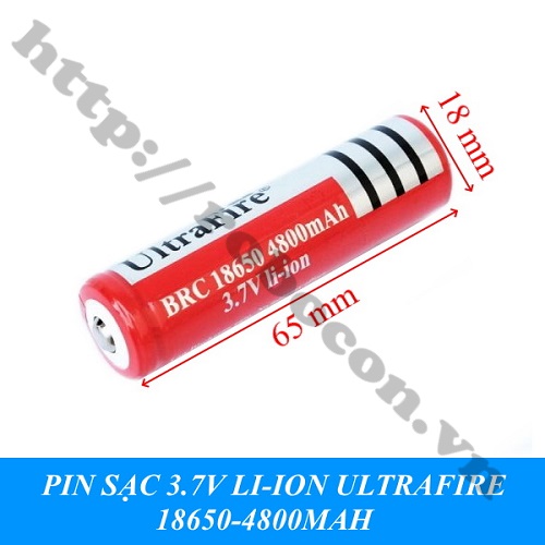 LKRB95 Pin Sạc 3.7v Li-Ion Ultrafire 18650-4800mah cho thời lượng chiếu sáng pin được lâu. Pin được sử dụng làm nguồn nuôi cho robot mô hình, dùng trong các mạch sạc pin, box sạc, làm nguồn điện dự trữ khi mất điện, sử dụng cho đèn pin và các thiết bị có điện áp 3.7V.