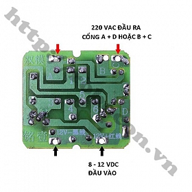 - Điện áp vào mắc vào 2 chân: 12V +, 12V-