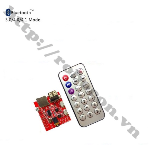 Mạch Giải Mã Âm Thanh Bluetooth Có Mạch Khuếch Đại 3W Kèm Remote là sản phẩm mạch giải mã âm thanh dùng để chế loa không dây, loa nghe nhạc, loa cầm tay mini..vv. Sản phẩm hỗ trợ giải mã âm thanh từ khe cắm thẻ nhớ, cổng USB và đặc biệt là kết nối không dây bluetooth 4.1 dễ dàng kết nối với điện thoại, máy tính bảng. Ngoài ra, mạch còn tích hợp mạch khuếch đại âm thanh stereo 3Wx2 tiện dụng khi chế loa mini mà không cần thêm mạch khuếch đại khác, có remote hồng ngoại điều khiển từ xa vô cùng tiện lợi.