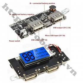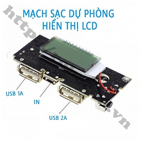 Mạch sạc pin dự phòng 2 cổng USB tích hợp LCD được sử dụng để chế các loại pin sạc dự phòng với khả năng cung cấp dòng ra cổng USB lên đến 2A.