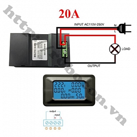 Công Tơ Điện Tử AC Đo 6 Thông Số 20A hay đồng hồ đo AC đa năng hiển thị 6 giá trị đo Điện áp, Dòng điện, Công suất, Tần số, Năng lượng, Hệ số công suất với dòng tải đo được tối đa 20A và công suất tối đa 4400W