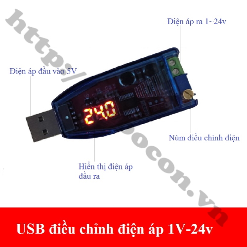 USB Điều Chỉnh Điện Áp 1-24V Hiển Thị Điện Áp Đầu Ra