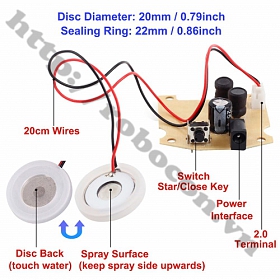 Mạch phun sương mini cổng DC 12V được dùng để làm các máy phun tinh dầu, máy phun sương cung cấp cho bạn hơi ẩm giúp cho không khí thoáng mát, da không bị khô khi ngồi trong phòng điều hòa, hay trong thời thiết hanh khô của mùa thu.