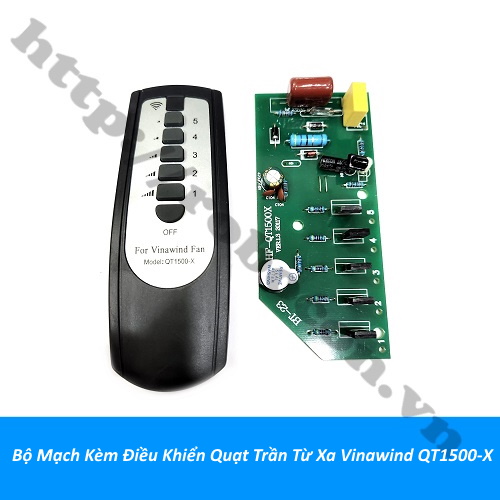 - Mạch Điều Khiển Quạt Trần Từ Xa VinaWind QT1500-X là bo mạch chuyên dùng cho việc điều chỉnh quạt trần mang thương hiệu Vinawind, có nguồn vào là 220VAC, module điều khiển với chế độ 5 số có 5 tốc độ gió cho bạn lựa chọn, lưu lượng gió là 253.5m3/min, giúp bạn đánh bay cơn nóng nực khó chịu của ngày hè