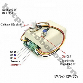 - Bộ điều tốc dùng chiết áp có công tắc bật tắc 100k và công tắt đảo chiều động cơ nhằm điều khiển tốc độ và thay đổi hướng quay động cơ cw, ccw.