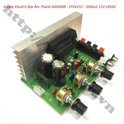 Mạch khuếch đại âm thanh (stereo amplifier) AM0408 sử dụng IC STK4152II nguồn đầu vào 15V-18V AC với công suất cao lên đến 100W (50Wx2 kênh) với các đặc tính như sau: