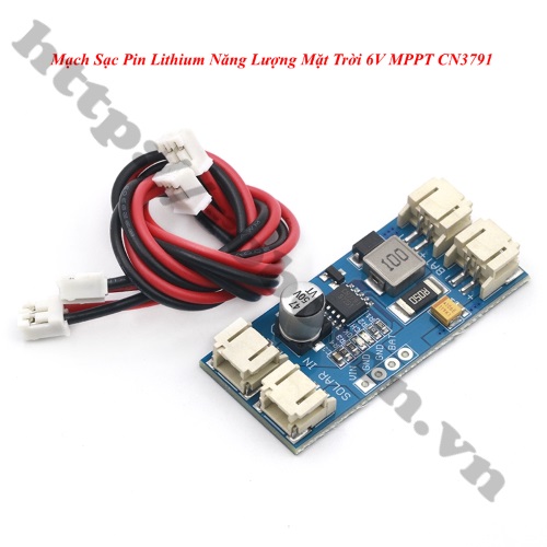 - Mạch sạc pin lithium năng lượng mặt trời 6V CN3791 là bộ sạc Lipo năng lượng mặt trời để theo dõi năng lượng tối đa (MPPT) của một pin lithium. Bộ sạc năng lượng mặt trời MPPT này cho phép bạn có được nhiều năng lượng nhất có thể từ một tấm pin mặt trời hoặc thiết bị quang điện khác và nạp nó vào một pin lithium có thể sạc lại. Sản phẩm rất dễ sử dụng, chỉ cần lắp tấm pin mặt trời vào một bên của bộ sạc năng lượng mặt trời, sau đó lắp pin vào phía bên kia để bắt đầu sạc.