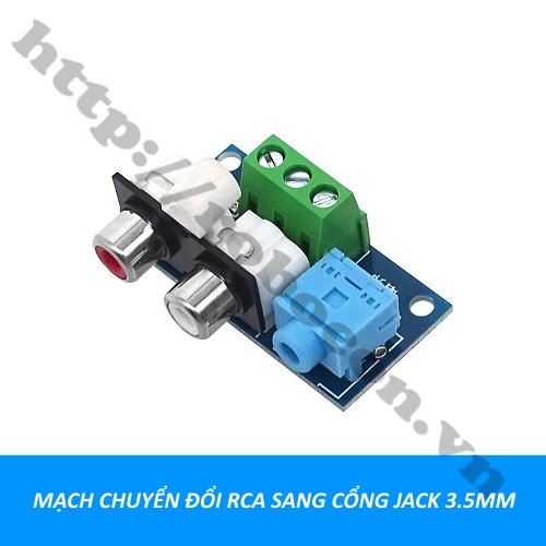 - Mạch chuyển đổi RCA XH-M152 sang jack 3.5mm là mạch jack chuyển đổi từ jack cắm aux, jack rca hay jack 3p hoặc domino128 sang jack 3.5mm. Mạch chuyển đổi RCA giúp bạn dễ dàng lắp đặt các loại mạch khuếch đại âm thanh, các nguồn âm thanh sẽ được kết nối nhiều loại jack cắm thông dụng như rca, 3.5mm, domino128 và đấu nối khác.