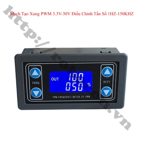 - Mạch tạo xung PWM 3.3V-30V điều chỉnh tần số 1hz-50khz hay còn gọi là mạch tạo tín hiệu xung vuông là thiết bị cung cấp tín hiệu điện ở nhiều tần số, sóng vuông và mức đầu ra. Mạch tạo xung PWM 3.3V-30V được sử dụng như nguồn tín hiệu hoặc nguồn kích thích để thử nghiệm. Được sử dụng rộng rãi trong thực tiễn sản xuất và công nghệ.