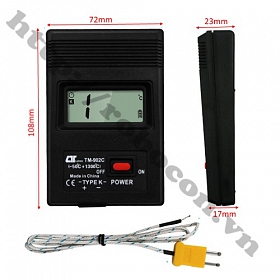 - Đồng hồ đo nhiệt độ tiếp xúc TM-902C kèm cảm biến tybe K -50oC ~ 1300oC là thiết bị đo nhiệt độ trực tiếp được thiết kế với màn hình LCD rõ ràng có độ phân giải 1°C hiển thị ở mức tiết kiệm pin, dây đo cảm biến nhiệt, có thể kết nối với que đo cảm biến type K cặp nhiệt điện,