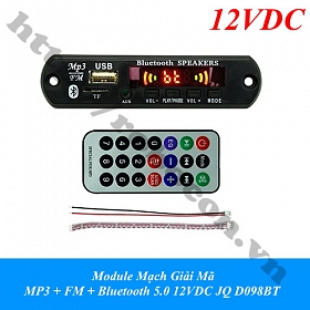 Module Mạch Giải Mã MP3 + FM + Bluetooth 5.0 12VDC JQ D098BT hay bộ giải mã là mach giải mã dùng để chế trên ô tô, làm mạch âm thanh, mạch giải mã mini USB / TF / Bluetooth / FM / USB MP3 / WMA.