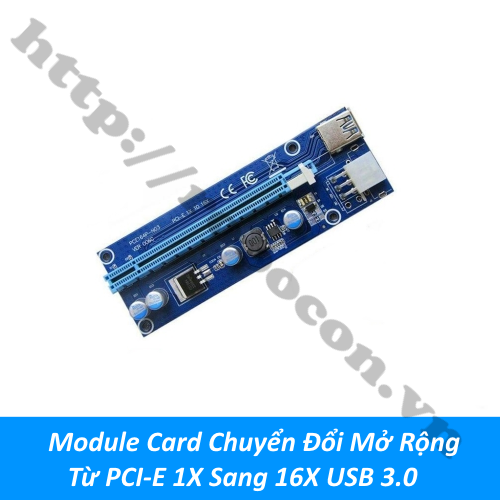 Module card chuyển đổi mở rộng từ PCI-E 1X sang 16X USB 3.0 là bộ chuyển đổi đầu nối thẻ PCI-E 1X đến 16X với đầu USB 3.0
