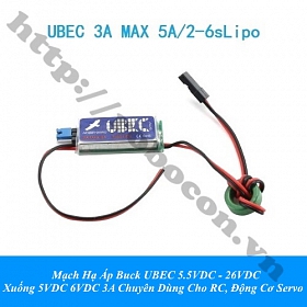 Mạch Hạ Áp Buck UBEC 5.5VDC - 26VDC Xuống 5VDC 6VDC 3A Chuyên Dùng Cho RC, Động Cơ Servo là bộ điều chỉnh DC / DC của chế độ chuyển mạch, nó đưa ra một điện áp an toàn nhất quán cho bộ thu, gyro và servo. Nó rất thích hợp cho máy bay trực thăng RC và các mô hình RC khác, đặc biệt khi BEC tích hợp trong bộ điều khiển tốc độ có khả năng đầu ra rất hạn chế.