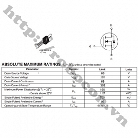 - Điện áp nguồn thoát tối đa | Vds: 68 V