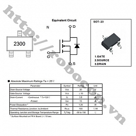 - Mosfet SI2300 20V 3.6A kênh N SMD A0SHB hay mosfet NPN là mosfet kênh N hay mosfet ngược loại chân dán.