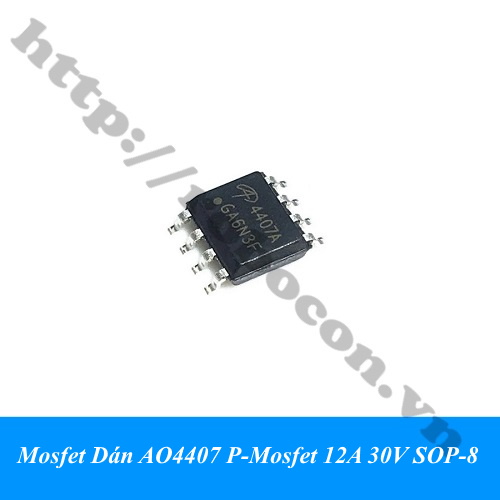 - Mosfet Dán AO4407 P-Mosfet 12A 30V SOP-8 hay mosfet 8 chân dán, mosfet kép, dual kênh, mosfet là mosfet kênh P hay mosfet thuận loại chân dán.