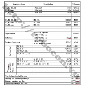 Thông số kỹ thuật Biến áp xung VC20022 EER28