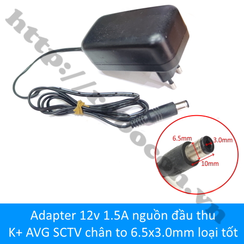 Adapter 12v 1.5A nguồn đầu thu K+ AVG SCTV chân to 6.5x3.0mm loại tốt