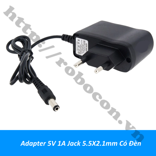 - Adapter 5V 1A jack 5.5x2.1mm có đèn báo là nguồn chuyển đổi từ AC 220V sang 5V DC dùng làm nguồn cho các mạch điện tử, làm nguồn cho các thiết bị sử dụng điện áp 5VDC.