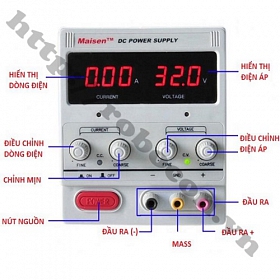 - Điện áp ra điều chỉnh: 0 - 30V DC.