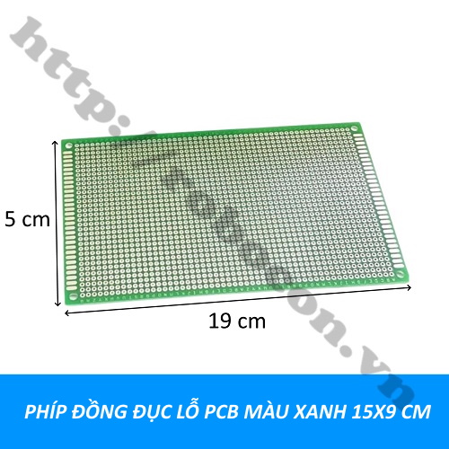 PHÍP ĐỒNG ĐỤC LỖ PCB MÀU XANH 15X9 CM là sản phẩm mạch đục lỗ thường được dùng để lắp mạch điện, thi công mạch điện mà không cần phải làm mạch. Thường được sử dụng để lắp mạch điện, tập hàn và thực hiện dự án dễ dàng hơn. Test board làm từ phíp thủy tinh 2 mặt rất bền, các lỗ được phủ thiếc, linh kiện có thể hàn ở cả 2 mặt dễ dàng dính thiếc khi hàn, rất khó bong bề mặt đồng, đảm bảo chất lượng cao khi hàn