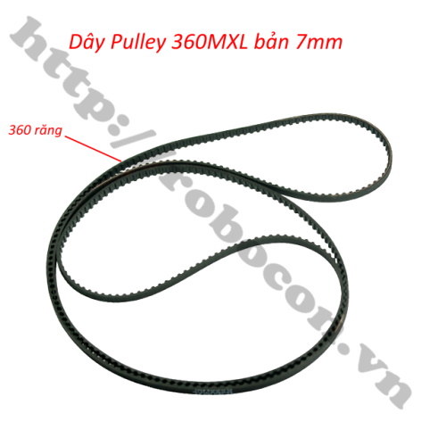 - PKK987 Dây pulley 360MXL chu vi 731.52mm bản 7mm hay dây pulley 360MXL là loại dây curoa cơ cấu truyền tải cho động cơ, làm máy mài, máy cắt mini, làm phụ kiện cho máy cưa tự chế, làm bộ truyền chuyển động. Được dùng để kết hợp với pulley để truyền động.
