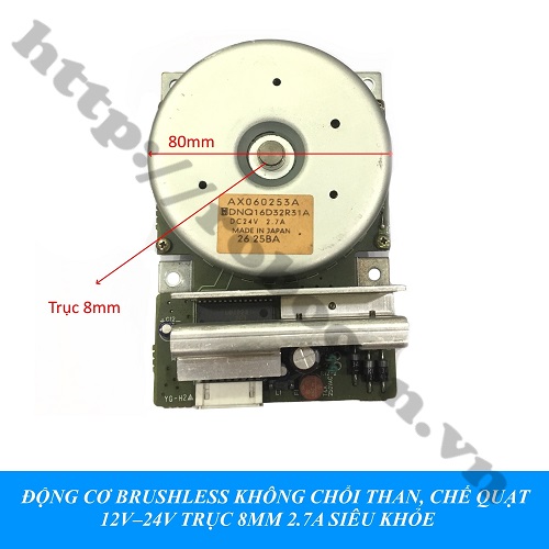 - Động cơ Brushless không chổi than 12V-24V 2.7A trục 8mm siêu khỏe là động cơ không chổi than dùng để chế quạt, máy mài, chế động cơ phát điện 3 pha,…