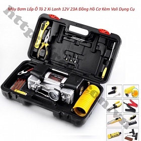 Máy bơm lốp Ô Tô 2 xi lanh 12V 23A đồng hồ cơ kèm vali dụng cụ chuyên nghiệp dùng bơm cho tất cả các dòng xe từ 4 đến 7 chỗ, đặc biệt dùng cho cả dòng xe bán tải, xe có lốp kích cỡ to mà những loại bơm khác không thể bơm được, có thể chủ động xử lý trong các trường hợp xe bị đinh găm thủng lốp, hoặc xe non hơi, hết hơi.