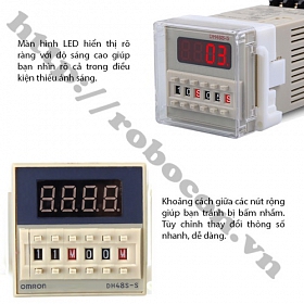 Bộ relay timer 220V DH48S-S là công tắc hẹn giờ định thời gian để có thể bật tắt thiết bị nào đó theo ý bạn với công suất max 5A/800W (nếu bạn muốn hẹn giờ cho các thiết bị công suất cao hơn bạn cần sử dụng qua rơle chịu tải) thiết bị có thể cài đặt thời gian tối thiểu 0.1 giây, có thể cài đặt tối đa 99 giờ.