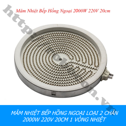 - Mâm nhiệt bếp hồng ngoại loại 2 chân 2000w 220v 20cm 1 vòng nhiệt là loại mâm được sử dụng cho bếp hồng ngoại. Ưu điểm của mâm nhiệt là độ bền cao, nhiệt độ chuẩn, không bị chói mắt. Về chức năng nấu, nếu bạn sử dụng nồi thủy tinh sẽ không phải lo tình trạng ố vàng vì bếp không tạo khí CO2 gây ảnh hưởng đến sức khỏe trong khi nấu.