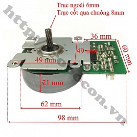 - Đường kính trục trong đi qua chuông động cơ: 8mm
