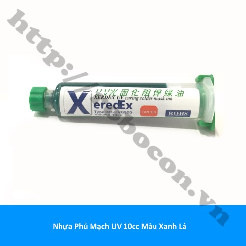 - Nhựa phủ mạch UV 10cc màu xanh lá hay keo UV green phủ mạch thích hợp trong việc sửa chữa các dấu vết, đường mạch bị hỏng tạo ra các đường mạch trơn tru trên bảng mạch PCB.