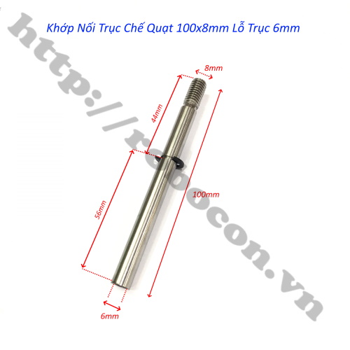 Khớp nối trục chế quạt 100x8mm lỗ trục 6mm dùng để thay trục cho motor brushless lắp cánh quạt bàn, quạt hộp, lắp được cho các loại motor tháo máy photo, là phụ kiện dùng để chế quạt từ động cơ DC sử dụng chế quạt dùng điện ắc quy.