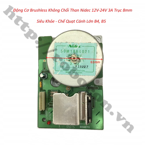 - Động cơ brushless Nidec 12V-24V 3A là động cơ không chổi than (brushless DC motor) dòng tải lớn, thích hợp cho chế quạt cánh lớn hoặc các ứng dụng khác như máy mài, cắt, chế động cơ phát điện 3 pha,…
