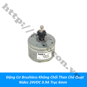 - Động cơ brushless không chổi than chế quạt Nidec 24VDC 0.9A trục 6mm là động cơ không chổi than dùng để chế quạt, máy mài, chế động cơ phát điện 3 pha,…