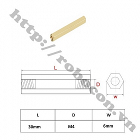 Kích Thước Trụ Đồng Lục Giác M4x30 Cái-Cái