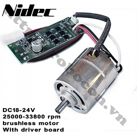 - Động cơ không chổi than tốc độ cao của Nhật Bản (Nidec) với tấm dẫn động, rôto bên trong bằng sắt neodymium, điện áp áp dụng là DC18V-24V, điện áp định mức là DC 21,6V. Động cơ không chổi than tốc độ cao, công suất cao, có bo mạch ESC, có nút nhấn điều chỉnh tốc độ, là động cơ không chổi than được sử dụng trong các máy hút bụi không chổi than cao cấp.