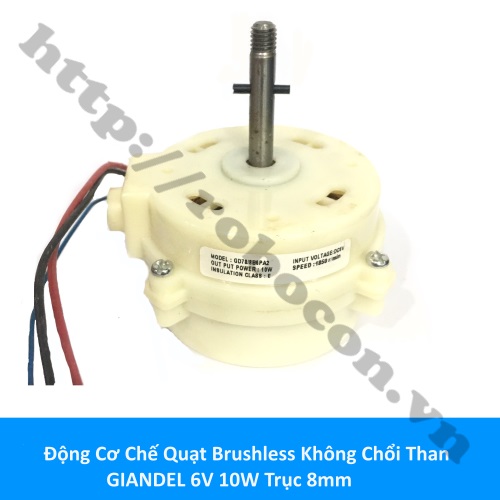 - Động cơ quạt điện GIANDEL 6V 10W brushless không chổi than là đầu quạt sử dụng để chế, thay thế, sửa chữa lắp cho các loại quạt chạy điện 6V, chế quạt chạy ắc quy, chạy pin 6V.