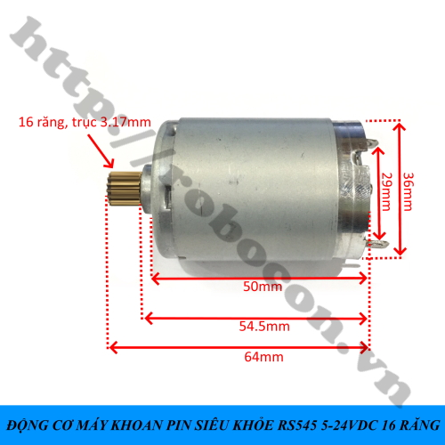 Động Cơ RS545 5-24VDC 0.12A nhông 16 răng cho lực kéo mạnh, mô-men xoắn cao, tốc độ cao, công suất lớn, là động cơ không thể thiếu trong sự vận hành của máy móc.