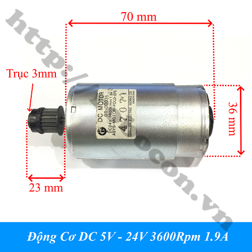 - Động cơ motor DC 5V - 24V 3600Rpm 1.9A cho lực kéo mạnh, mô-men xoắn cao là động cơ không thể thiếu trong sự vận hành của máy móc.