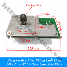 - Với momen xoắn cao nên động cơ brushless không chổi than 24VDC 47.5W có thể dùng diy máy mài mini, motor kéo nhám vòng mini khi cho qua bộ tăng tốc bằng dây đai hay xích.