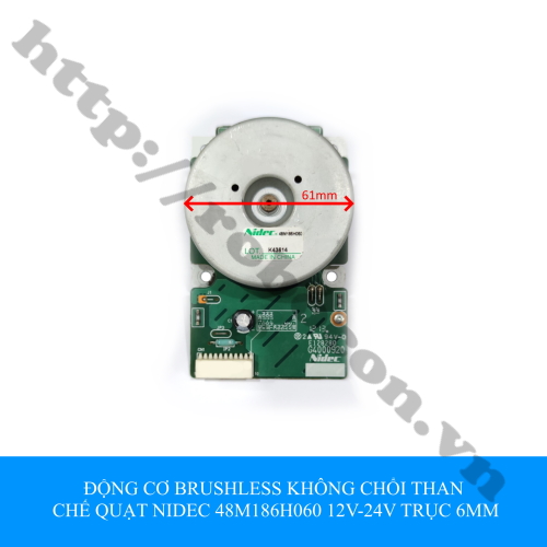 - Động cơ brushless không chổi than Nidec 48M186H060 12v-24v hay động cơ BLDC là động cơ không chổi than nidec servo dùng để chế quạt, máy mài, chế động cơ phát điện mô tơ 3 pha,…