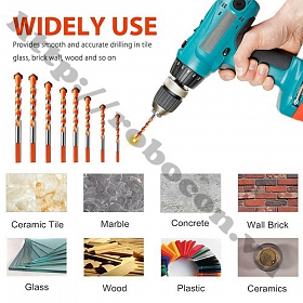 Bộ 8 mũi khoan đa năng hai cạnh HSS 3mm đến 12mm có chức năng khoan kính, thủy tinh, gạch men, gạch đá hoa, gỗ chuôi tam giác sẽ có chế độ khoan nhanh chóng và có độ khoét nhanh và mũi khoan lỗ tròn hơn.