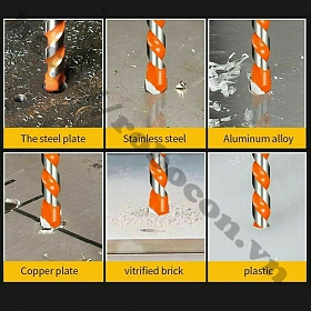 - Mũi khoan đa năng có thể sử dụng khoan trên nhiều chất liệu như: kính, gạch men, đá các loại, tường nhà, nhựa, gỗ, sắt mỏng... (trừ sắt dày - quý khách cần khoan sắt vui lòng mua riêng mũi khoan sắt - KHÔNG sử dụng mũi đa năng cho khoan sắt)