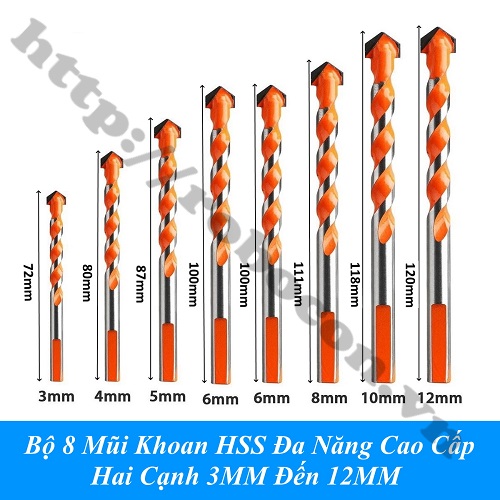 Ứng Dụng Bộ 8 Mũi Khoan HSS Đa Năng Cao Cấp Hai Cạnh 3MM Đến 12MM